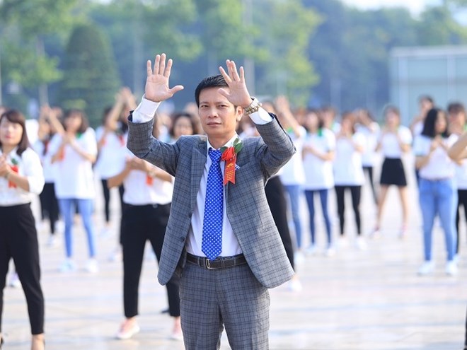 “Thầy Chủ tịch và thầy Hiệu trưởng nhảy rất nhiệt tình và đẹp, khiến chúng em cũng phải cố gắng tập luyện tốt hơn”, Hà Trang, tân sinh viên K23 lớp Anh - Hàn, Đại học Đông Đô, chia sẻ.