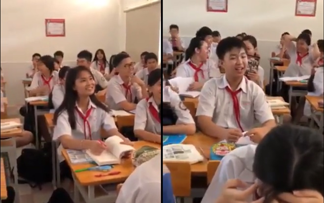 Các bạn học sinh hào hứng hát theo nhạc