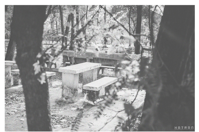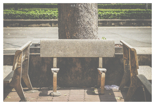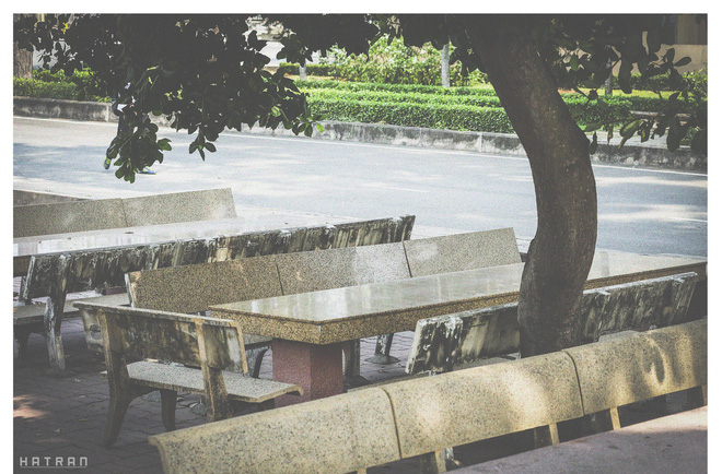 Độc bàn trong vườn trường dùng để các cặp đôi ngôi tâm sự hoặc bạn bè học bài