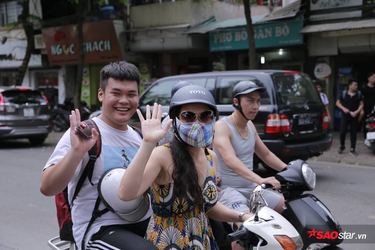 Mọi người giơ tay vẫy khi thấy bóng dáng con em mình xuất hiện.