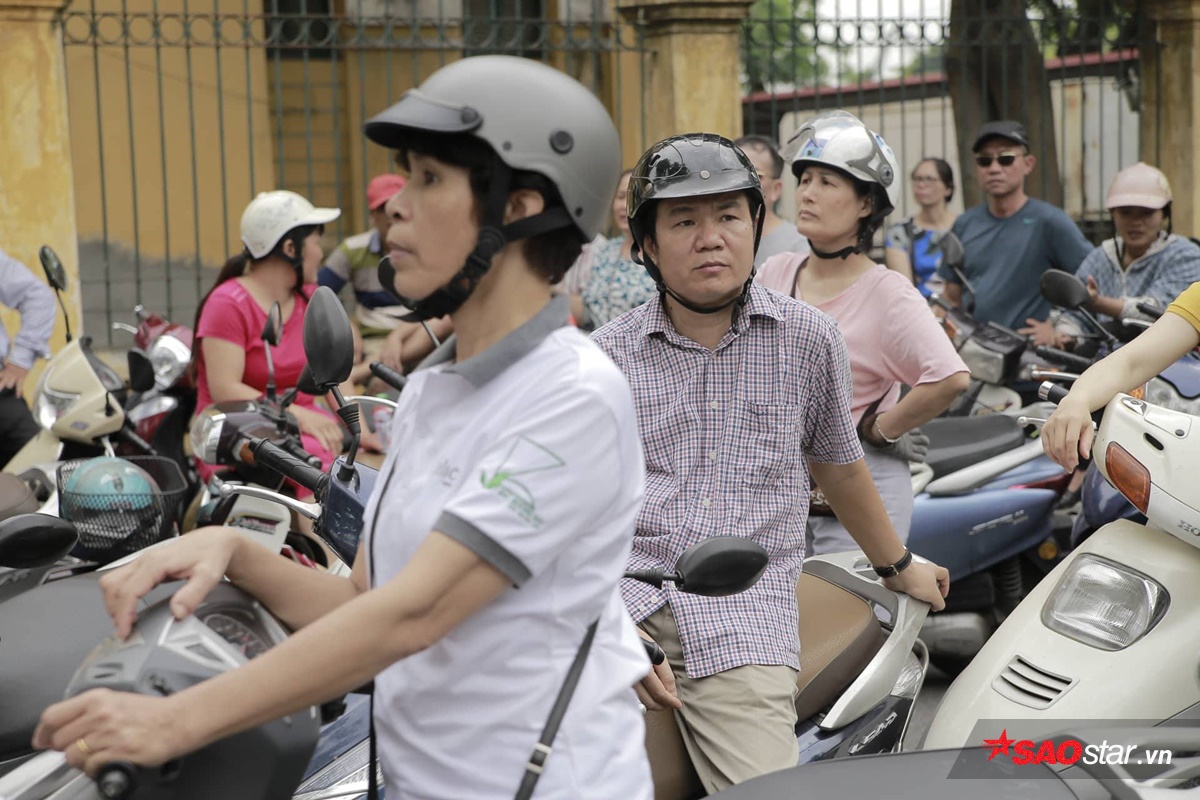 Phụ huynh chăm chú quan sát xem con em mình đã ra đến ngoài cổng hay chưa.