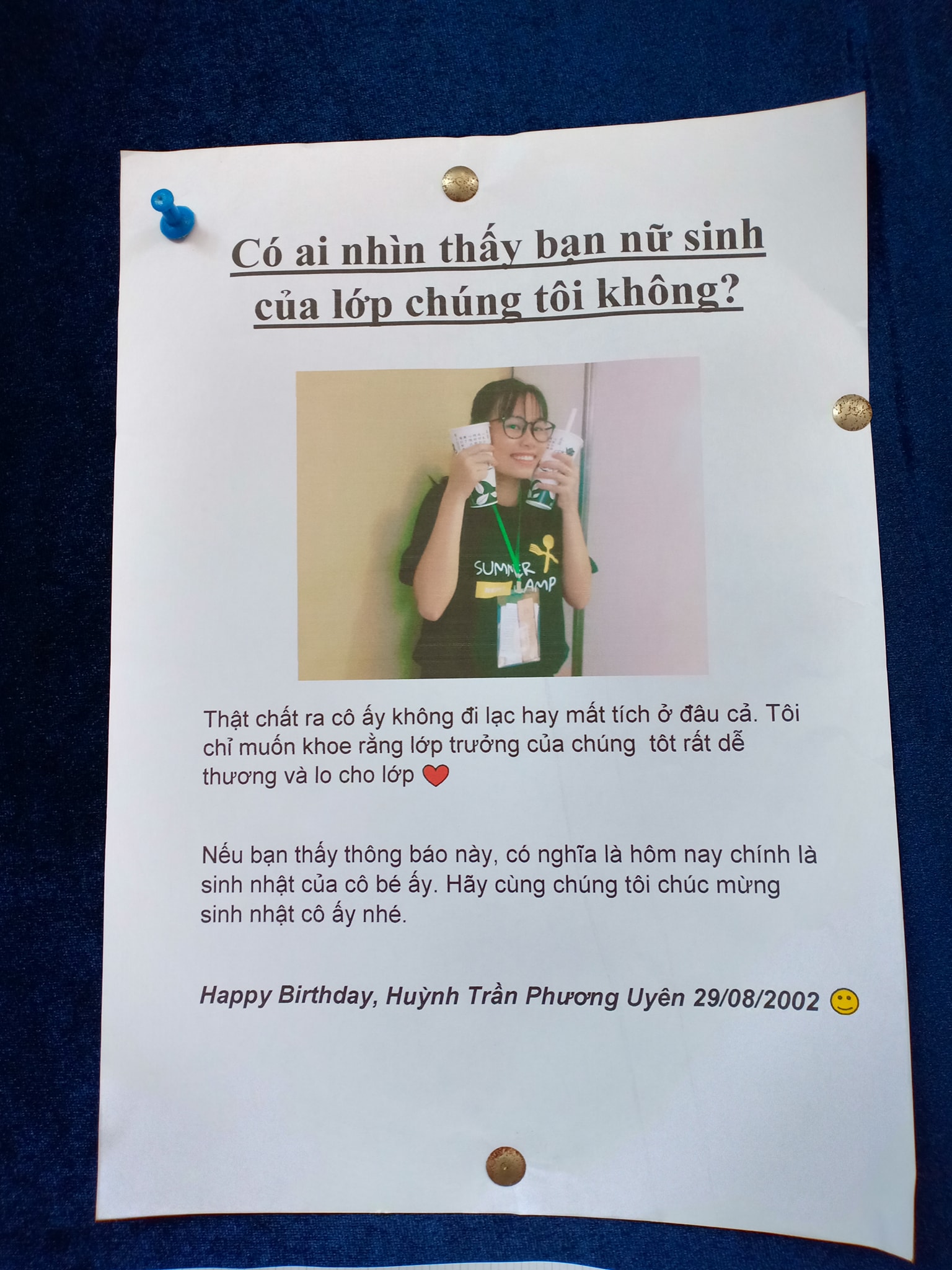 Chân dung lớp trưởng Huỳnh Trần Phương Uyên được cả lớp chúc mừng sinh nhật hết sức có tâm.