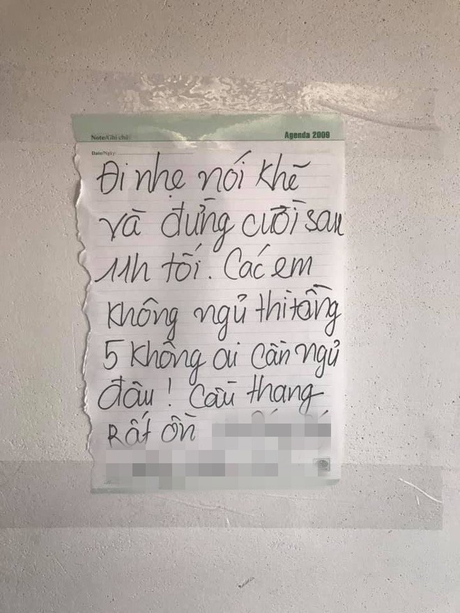 Qúa bức xúc trước tình cảnh này, cô gái đã phải gọi điện xin chủ chuyển nhà gấp. Đáng chú ý, trước khi chuyển đi, cô gái đã viết giấy kèm theo nội dung “dằn mặt” dán ở nhiều vị trí để nhắc nhở thái độ của những thành viên vô ý thức kia.