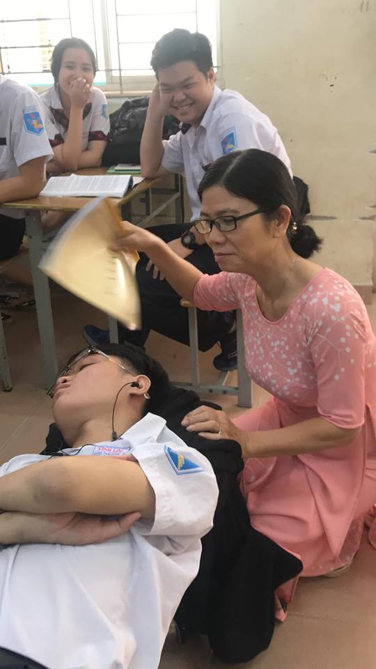 Clip cô giáo quạt cho nam sinh ngủ tiếp gây sốt mạng xã hội.