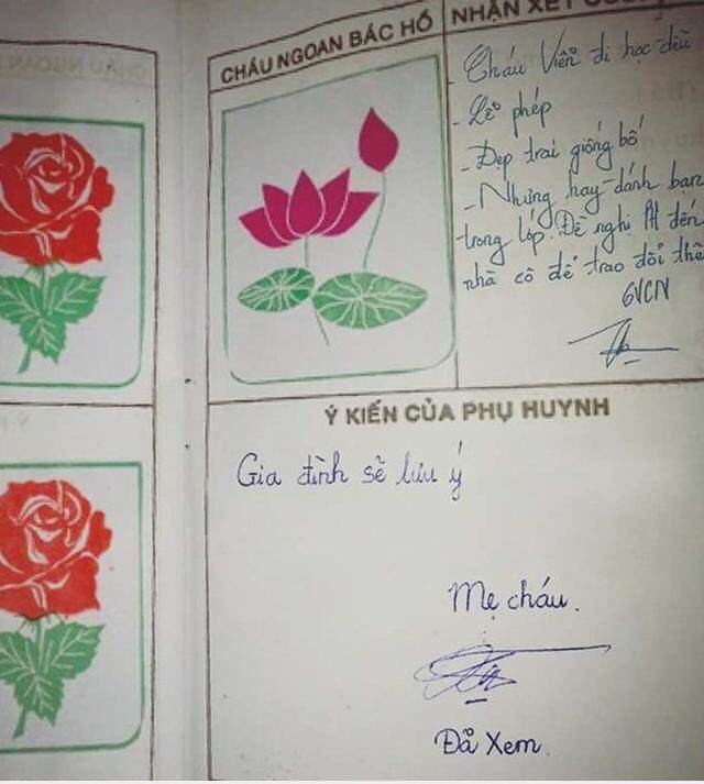 Chưa kịp trả lời câu hỏi này, họ đã phải cười ngất trước sự thông minh, hóm hình của bà mẹ. Cụ thể, bà mẹ đáp lại: “Gia đình sẽ lưu ý” rồi kí tên “Mẹ cháu - Đã xem“.
