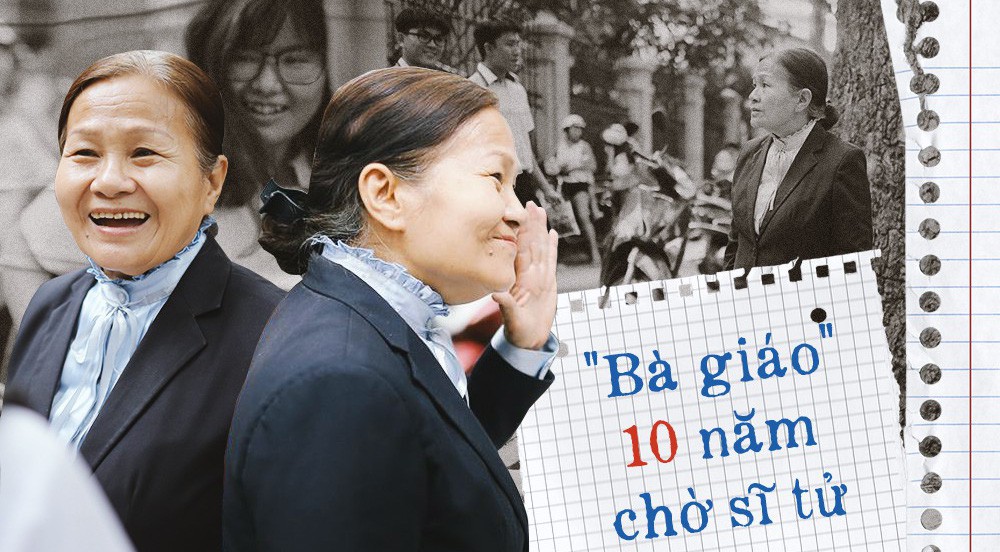 Thì ra cô cũng chờ “con”, nhưng “con” của cô là hàng trăm đứa học trò nhỏ mà cô yêu quý. Và đây, không phải là lần đầu tiên mà đã là lần thứ 10, cô đứng ngóng học trò ở cổng trường mỗi mùa thi.