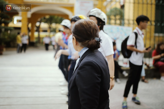 Cô đứng xếp hàng ngay ngắn và nhìn vào điểm trường sau khi kết thúc môn thi buổi chiều.