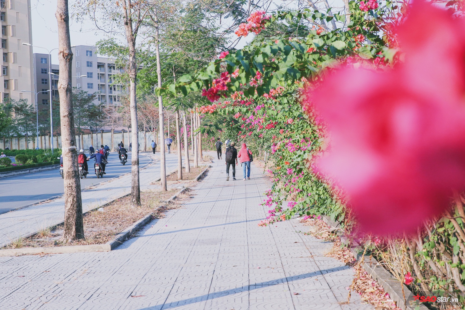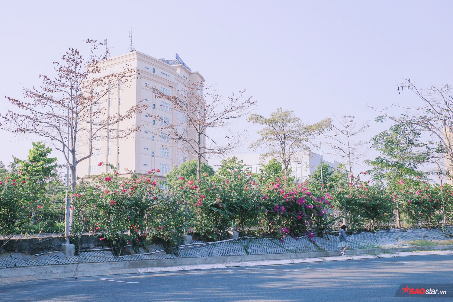 Hoa giấy nở bên hông ĐH Công nghệ thông tin nhìn qua cơ sở Nhân Văn.