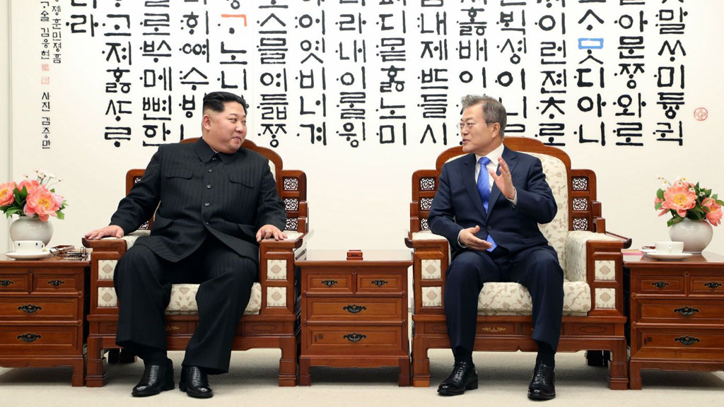 Ông Kim Jong Un gặp Tổng thống Hàn Quốc Moon Jae In hồi tháng 4/2018.