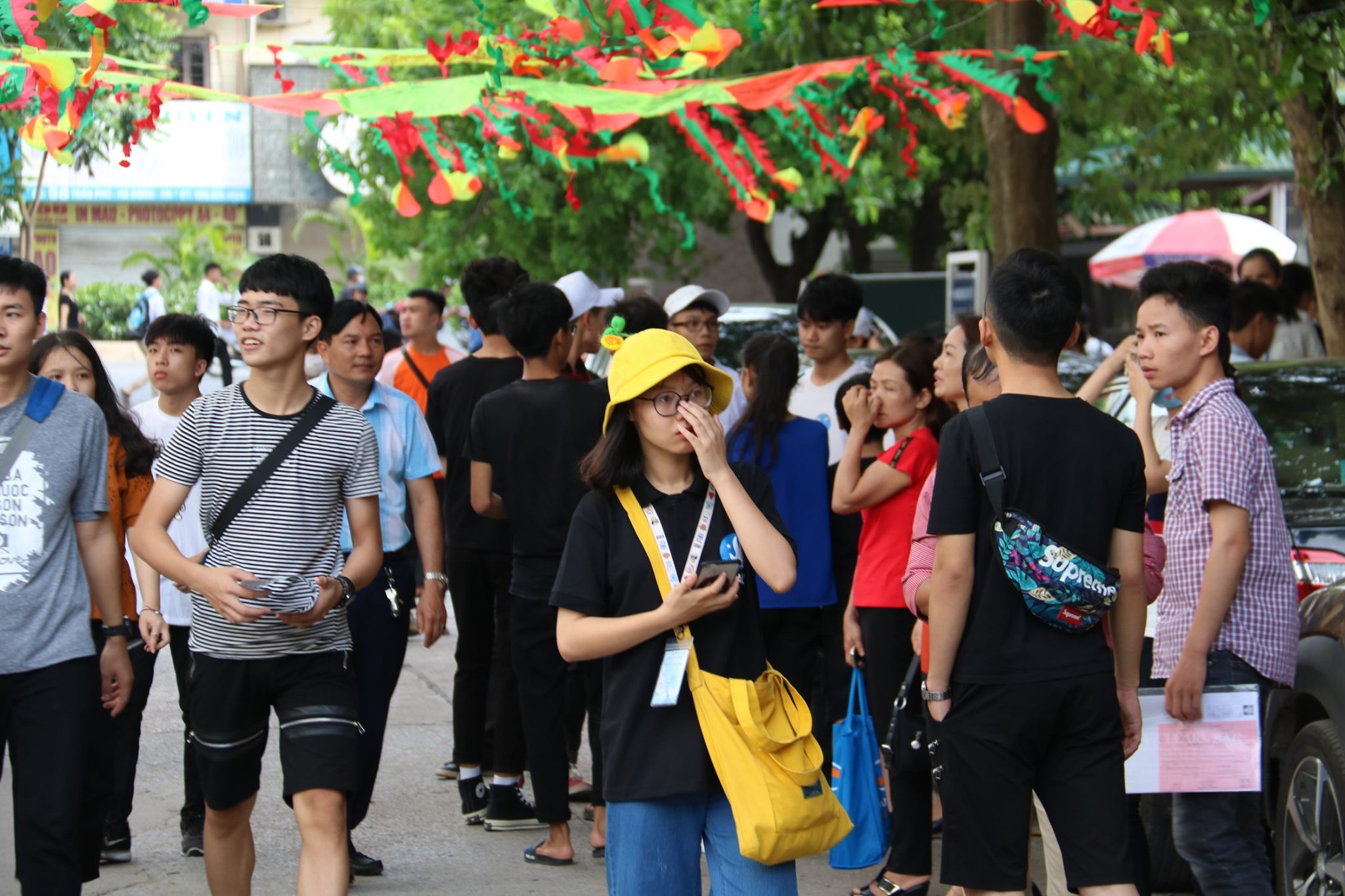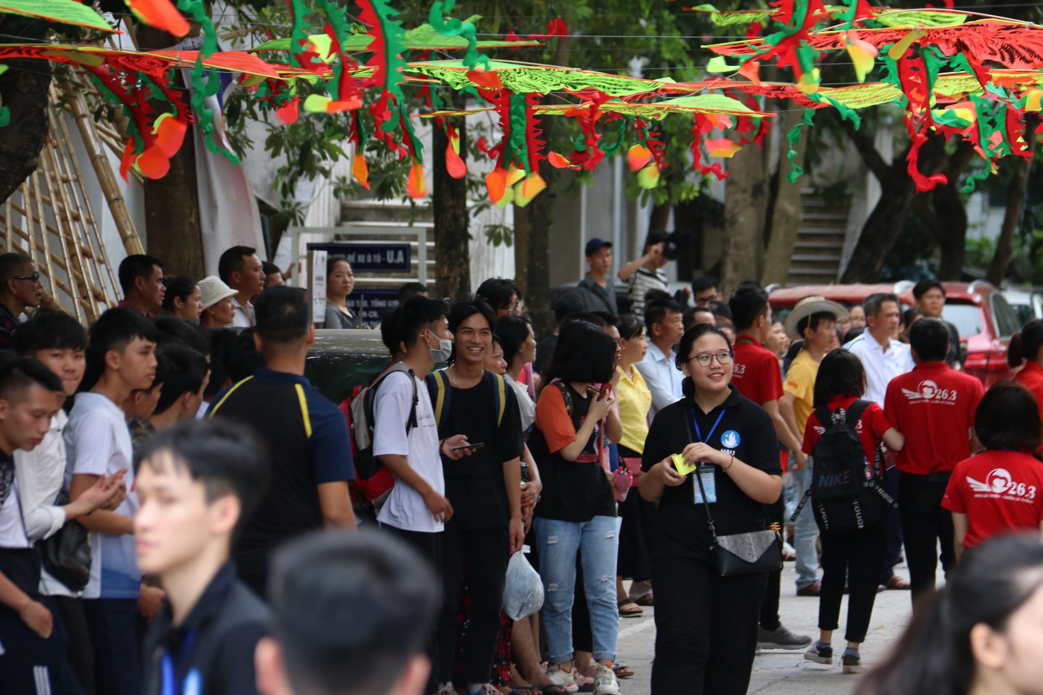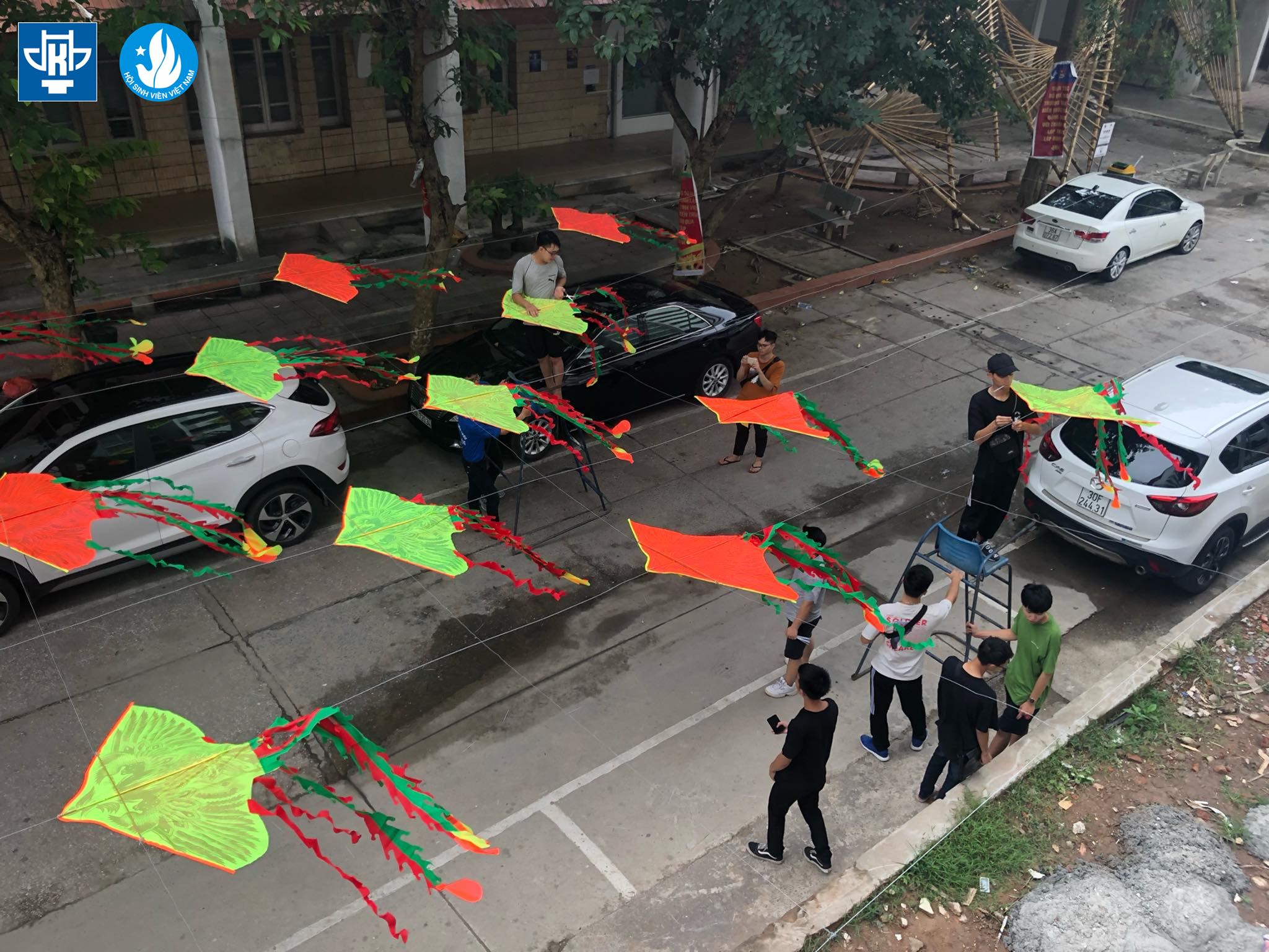 Trước các ngày thi, các thành viên đã lê kế hoạch thực hiện con đường diều nhiều màu sắc, chào đón các sĩ tử đến tham gia buổi thi.