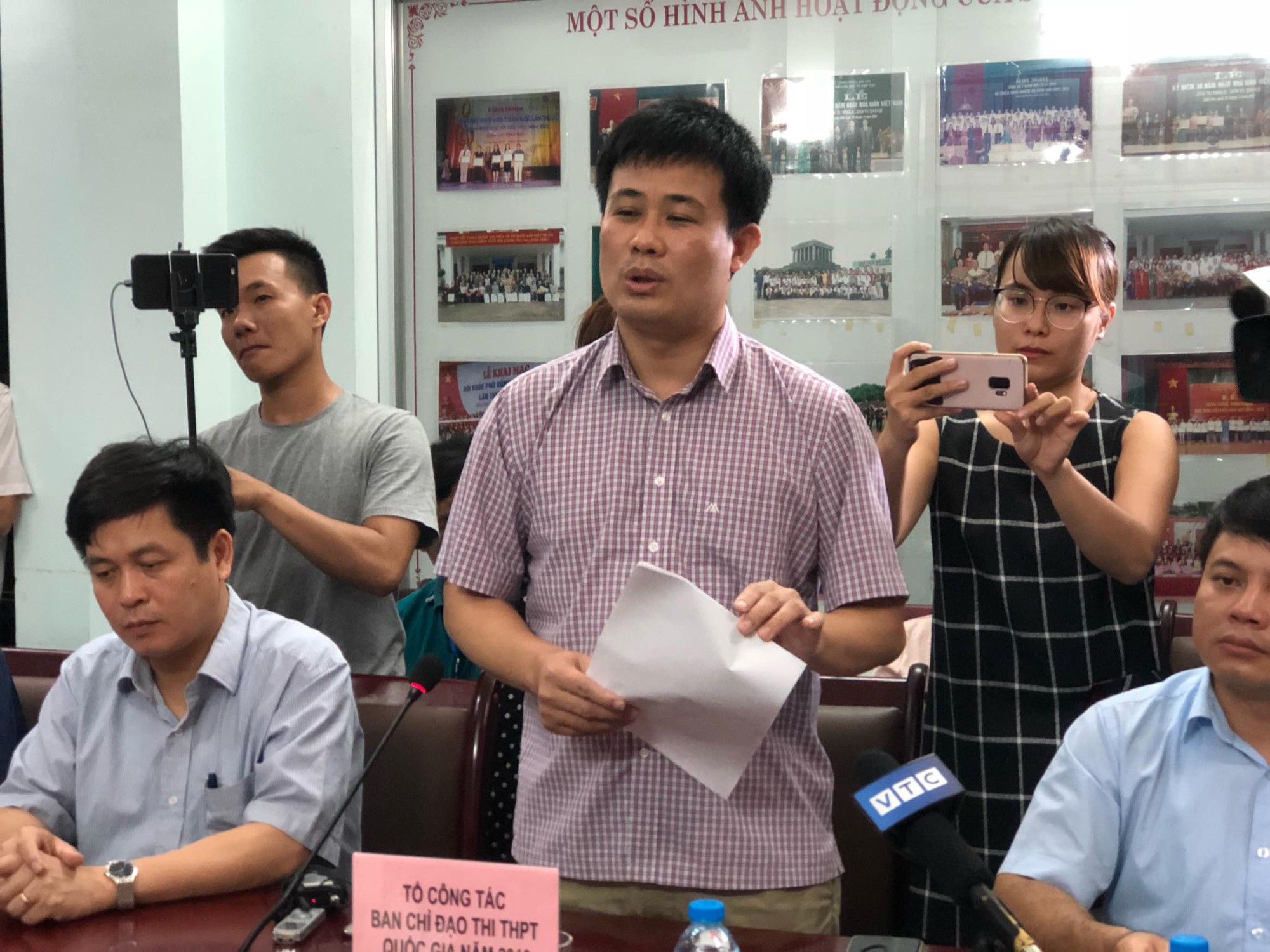 19h, buổi họp báo chính thức bắt đầu. Đại diện tổ công tác ông Sái Công Hồng - phó Cục trưởng cục quản lý chất lượng - Bộ GD&ĐT, thông báo kết quả kiểm tra, xác minh về kết quả thi THPT quốc gia 2018 tại hội đồng thi Sở GD&ĐT tỉnh Lạng Sơn.