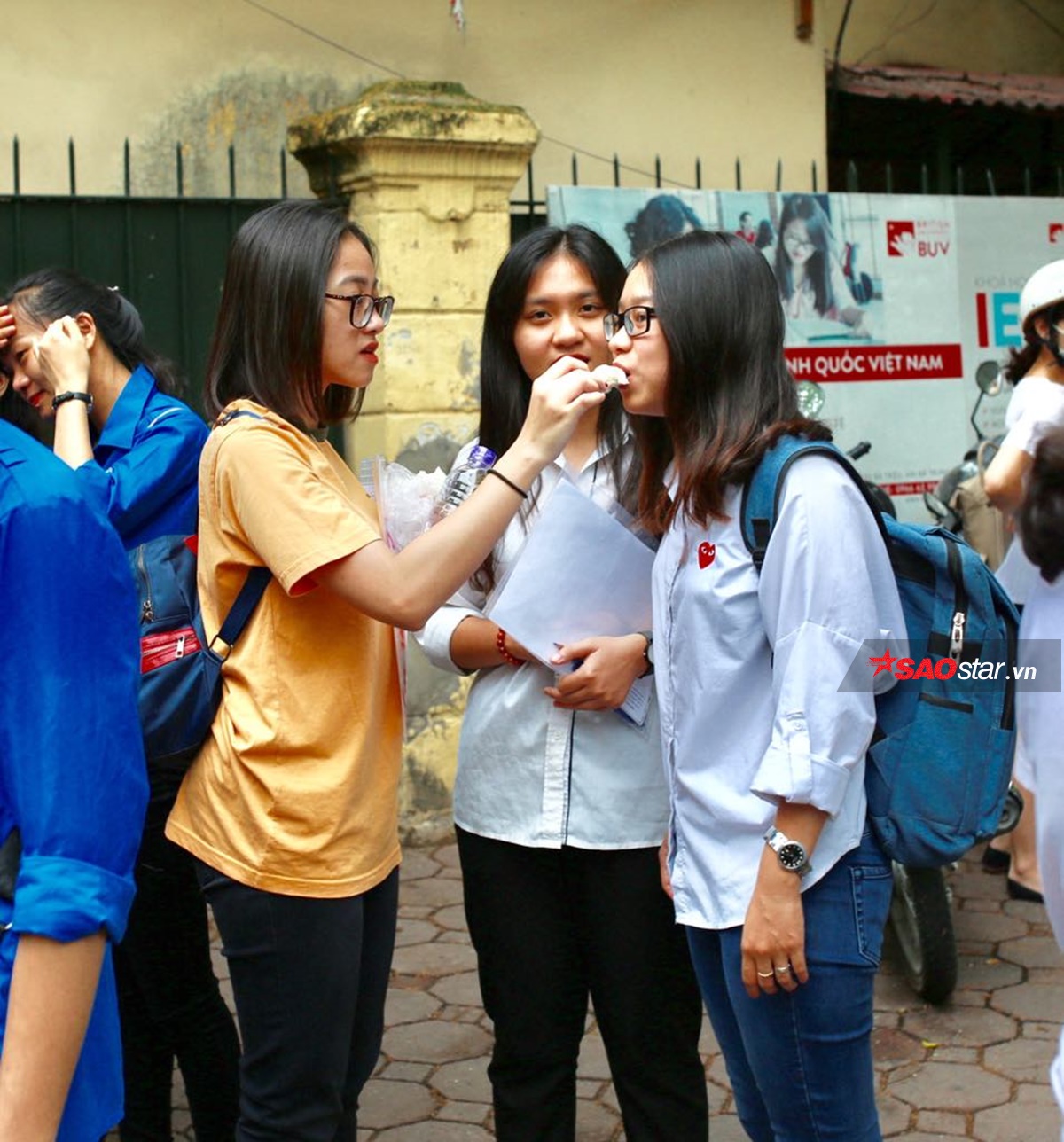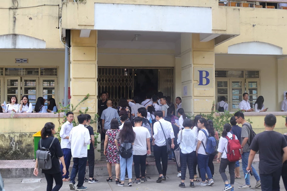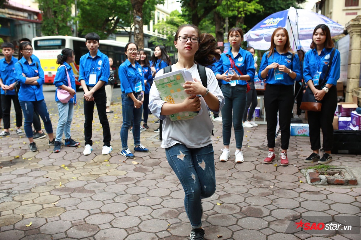 Các bạn trẻ háo hức bước vào phòng thi.