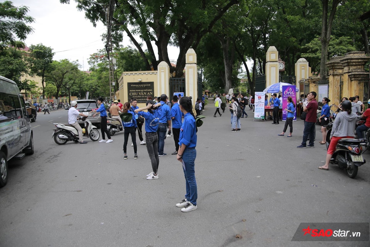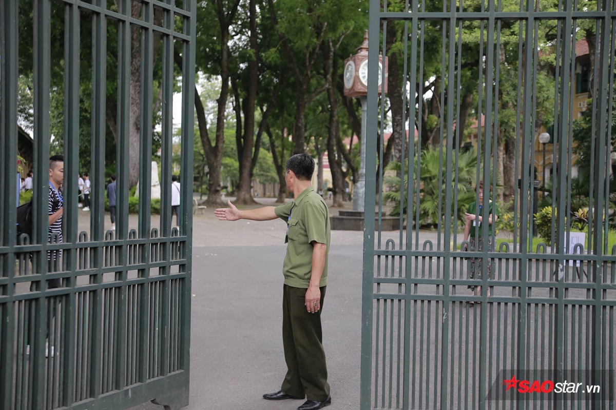 Mặc dù chưa đến giờ thi nhưng lúc này nhiều cổng trường đã bắt đầu khép lại do sĩ tử gần nhu đã đến đông đủ, bảo vệ kiểm soát nghiêm ngặt người ra vào. Phụ hunh đưa đón sĩ tử đi thi đều phải đứng lại bên ngoài.