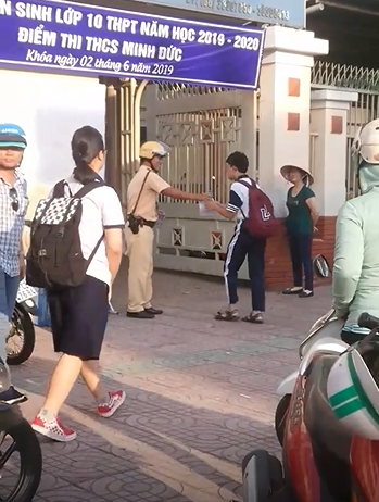 Hôm nay 3/6, ngày thứ 2 thi tuyển sinh vào lớp 10 của các bạn thí sinh ở Sài Gòn. Ngay trước giờ vào thi, nhiều phụ huynh và thí sinh có mặt tại điểm thi trường THCS Minh Đức (Quận 1, TP HCM). Điều đáng ngạc nhiên và xúc động đó là những hành động đẹp của các chiến sĩ CSGT giúp đỡ sĩ tử mùa thi.