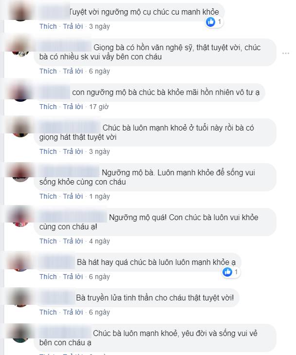 Rất nhiều bình luận bày tỏ sự ngưỡng mộ trước giọng hát tuyệt vời của cụ bà.