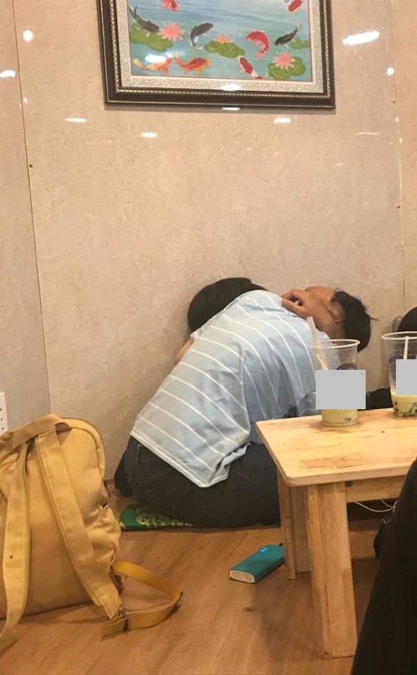 Hình ảnh cặp đôi vô tư trong quán trà sữa khiến cư dân mạng bức xúc. Ảnh: Chan Chan/Hội Những Người Ở Khu B - KTX ĐHQG TP.HCM