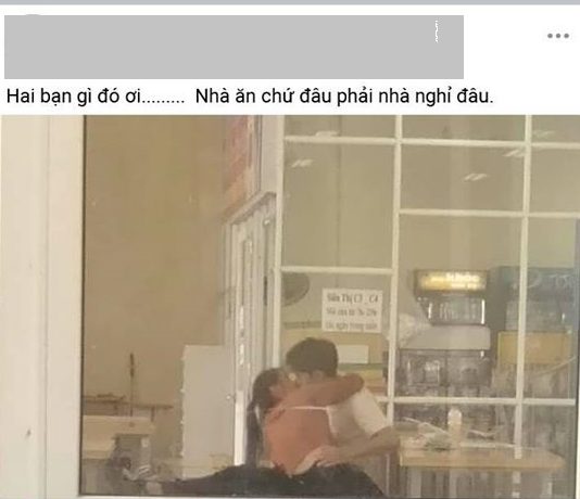 Ở bài viết được lan truyền này, tài khoản đăng tải tỏ ra tức giận, viết: “Hai bạn gì đó ơi… Nhà ăn chứ đâu phải nhà nghỉ đâu”. Theo đó, cặp đôi này còn “chịu chơi” hơn khi ngang nhiên ôm hôn giữa một nơi khá thoáng như nhà ăn.