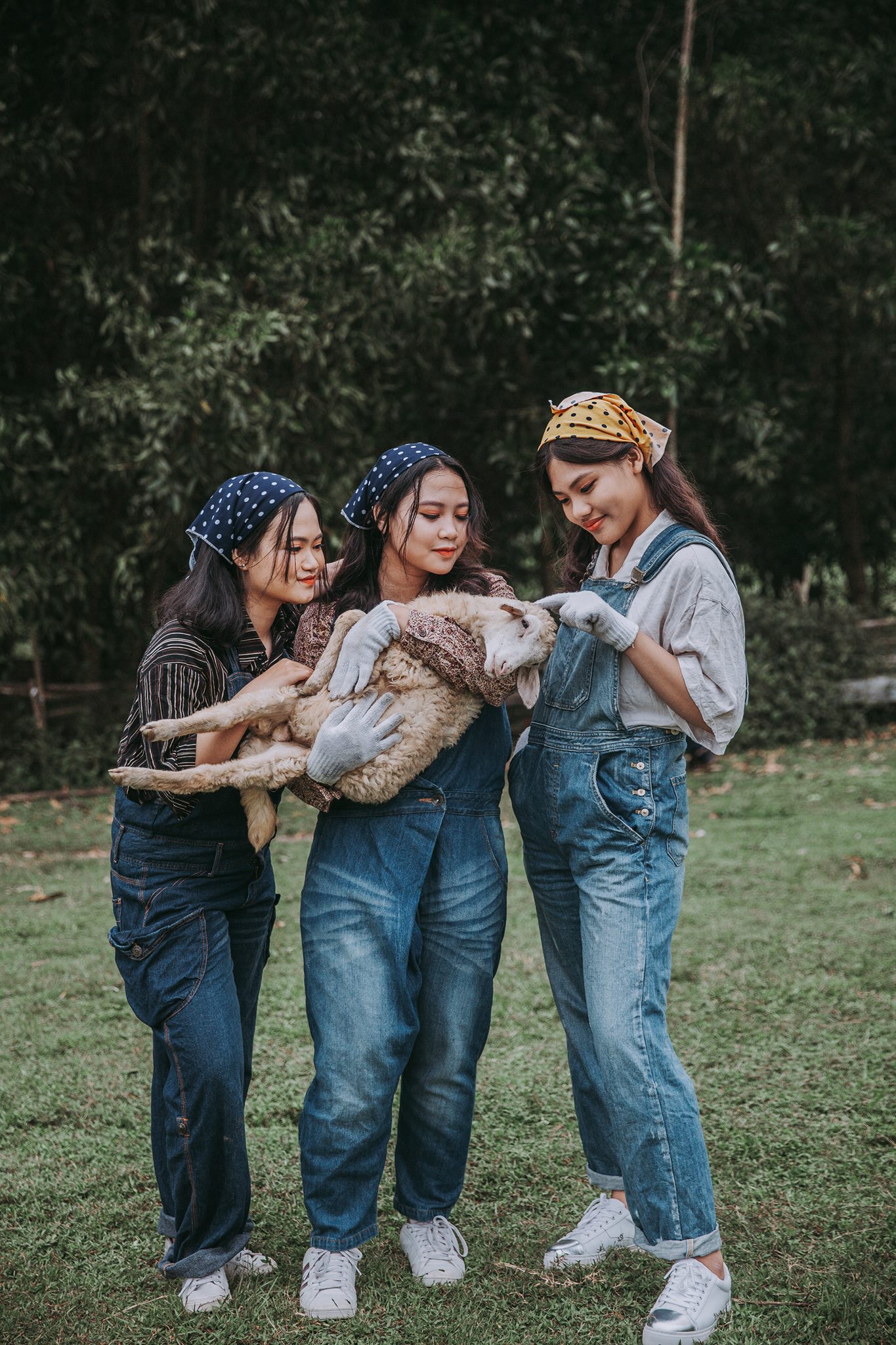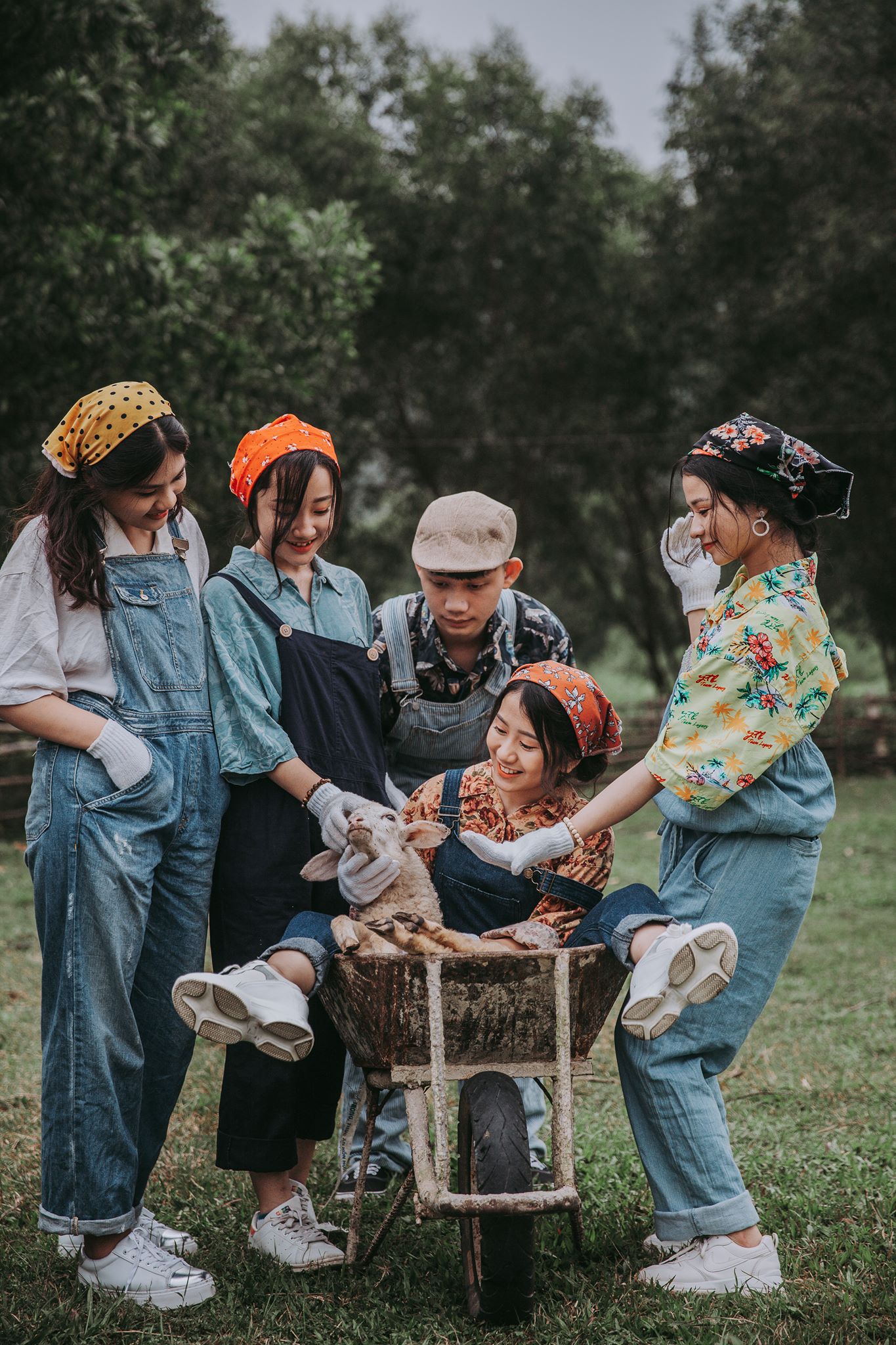 Những lúc vui đùa cùng nhau của các anh chị công nhân ở nông trại cừu.