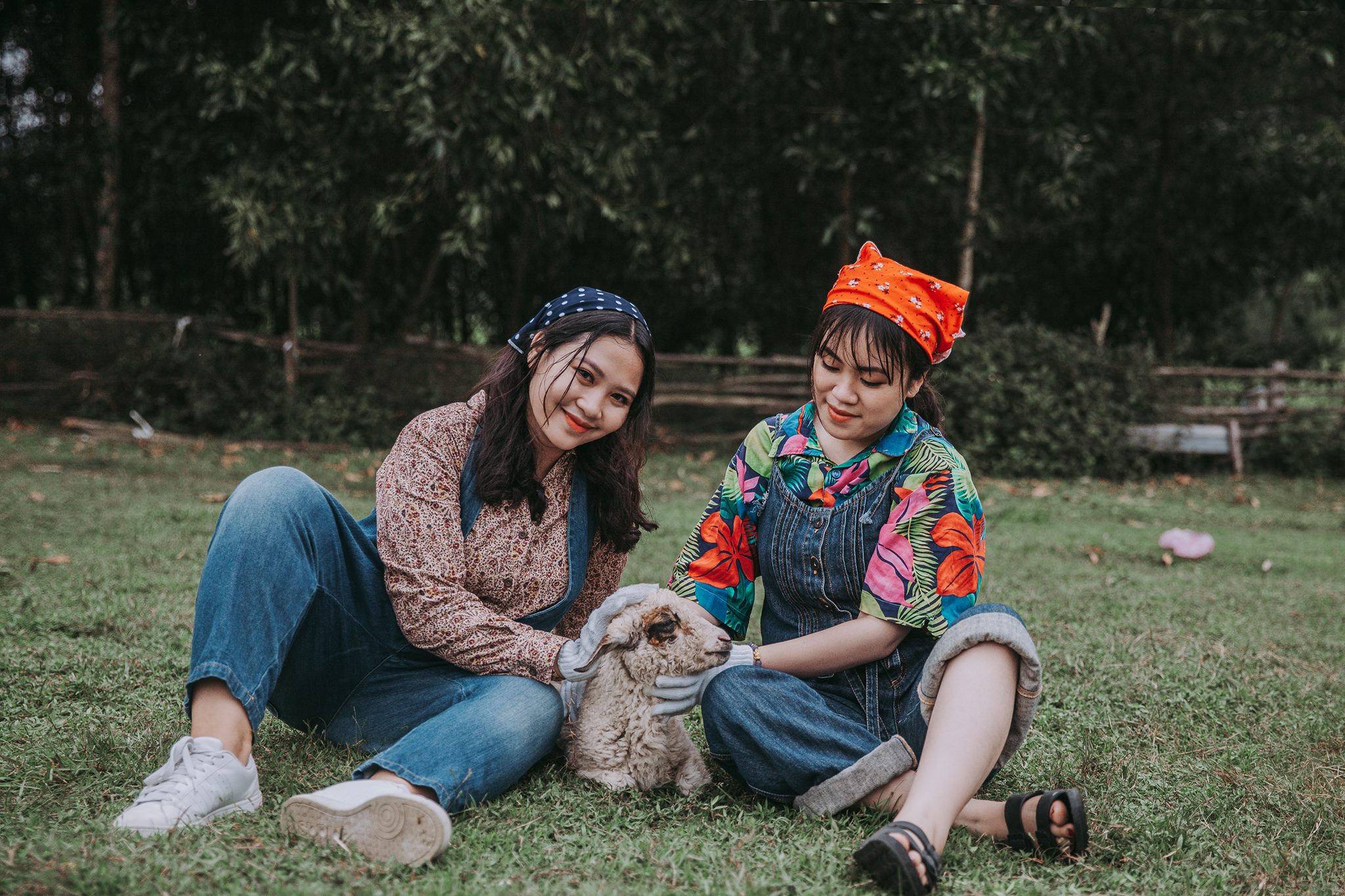 Nụ cười xinh xắn của 2 cô công nhân chăn cừu.
