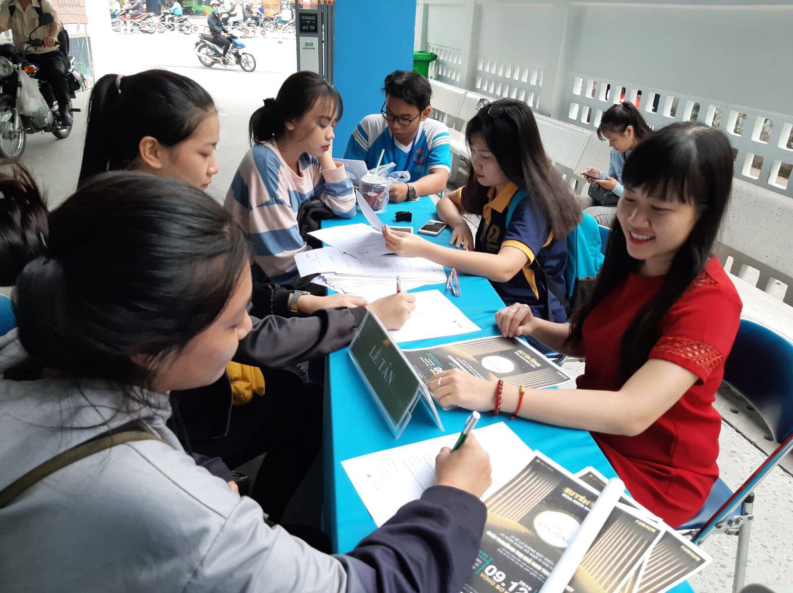 Các thí sinh tại ĐH Gia Định trong buổi đăng ký tuyển sinh “Hoa khôi Sinh viên NHG 2020”.