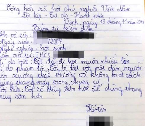 Mới đây, mạng xã hội xuất hiện hình ảnh một bản kiểm điểm của một học sinh cấp 2 ở thành phố Vinh (Nghệ An) với lí do cực hài hước khiến CĐM chú ý.