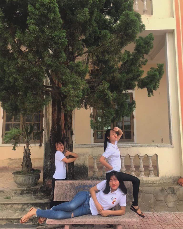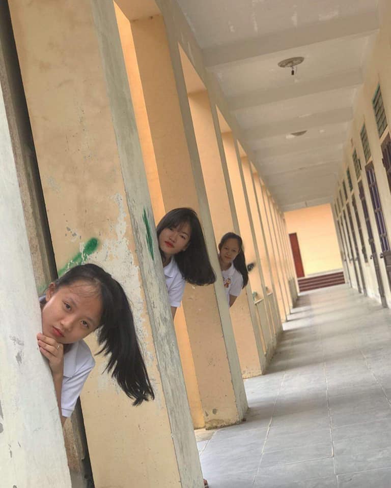 Có thể thấy, bộ ảnh này được bộ 3 nữ sinh chụp một cách ngẫu hứng với những màn tạo dáng cực “bá đạo”. Các bạn chọn những bối cảnh quen thuộc ngay tại chính ngôi trường của mình như: sân trường, hành lang, vườn hoa trong khuôn viên trường… và cùng lưu lại những khoảnh khắc “không giống ai” nhưng vô cùng ấn tượng.