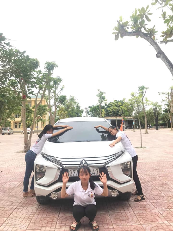 Mượn cả xe của thầy cô để làm “đạo cụ”.
