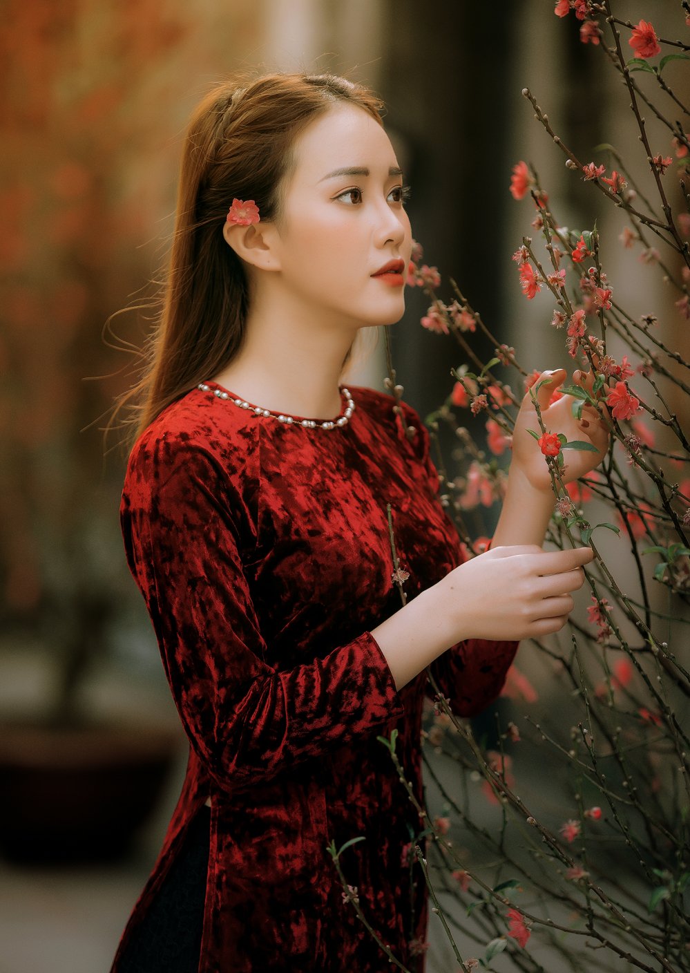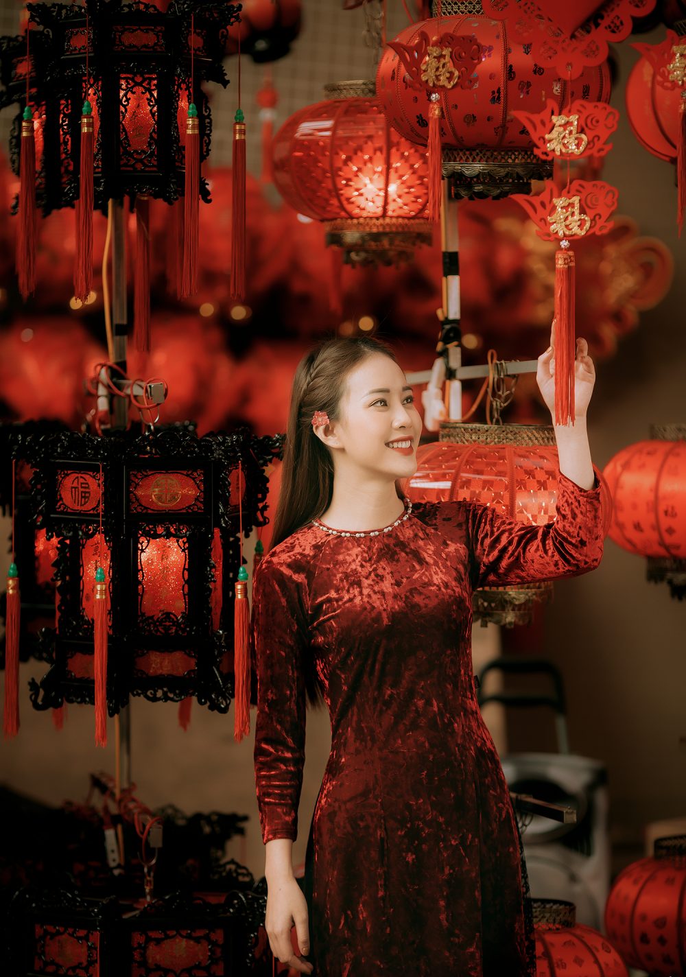 Chính vì vậy, bộ ảnh lấy cảm hứng từ vẻ đẹp người con gái Hà Nội của Mai Phương đã cho thấy một góc nhìn vốn tưởng chừng như lạ lẫm nhưng lại rất quen thuộc, đó chính là phố ông đồ, hoa đào đỏ, phố Hàng Mã đỏ rực mỗi dịp lễ, Tết rộn ràng…