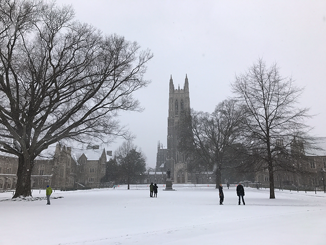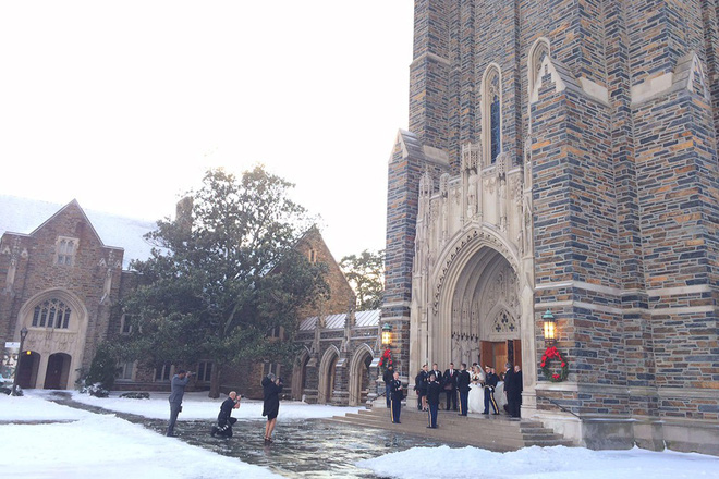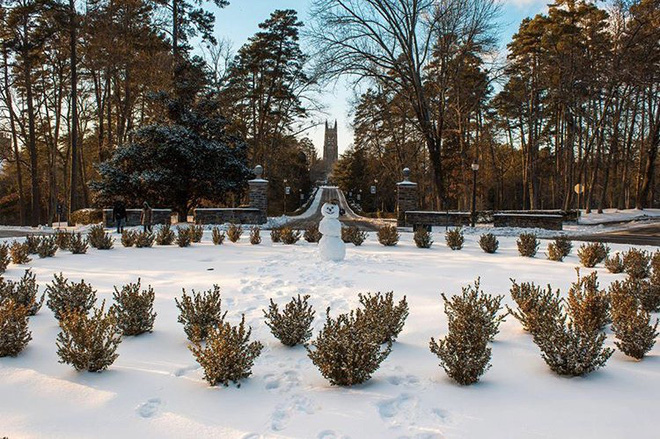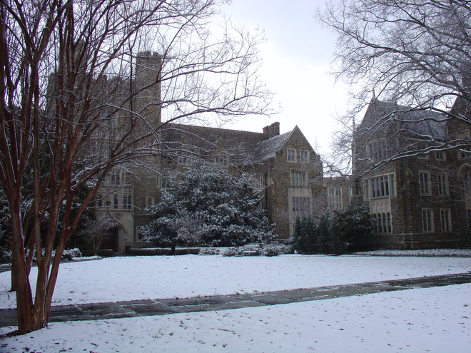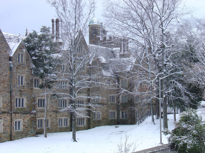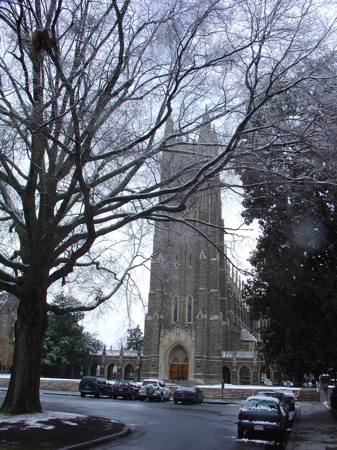 Một trong những kiến trúc thu hút nhất của trường là nhà nguyện Duke có sức chứa lên đến 1600 người. Công trình nổi bật bởi kiến trúc đồ sộ. Khi mùa đông đến, tuyết trắng càng tô điểm cho vẻ đẹp sừng sững của tòa nhà. Đặc biệt, vào lúc trời tối, ánh đèn tỏa ra từ phía nhà nguyện càng làm cho không gian trở nên đẹp hút hồn hơn nữa.