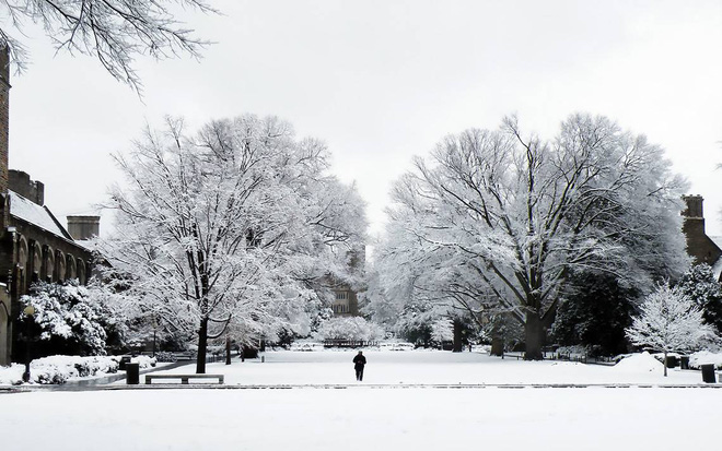 Mọi địa điểm của ngôi trường đều được phủ một màu trắng xóa trong mùa đông