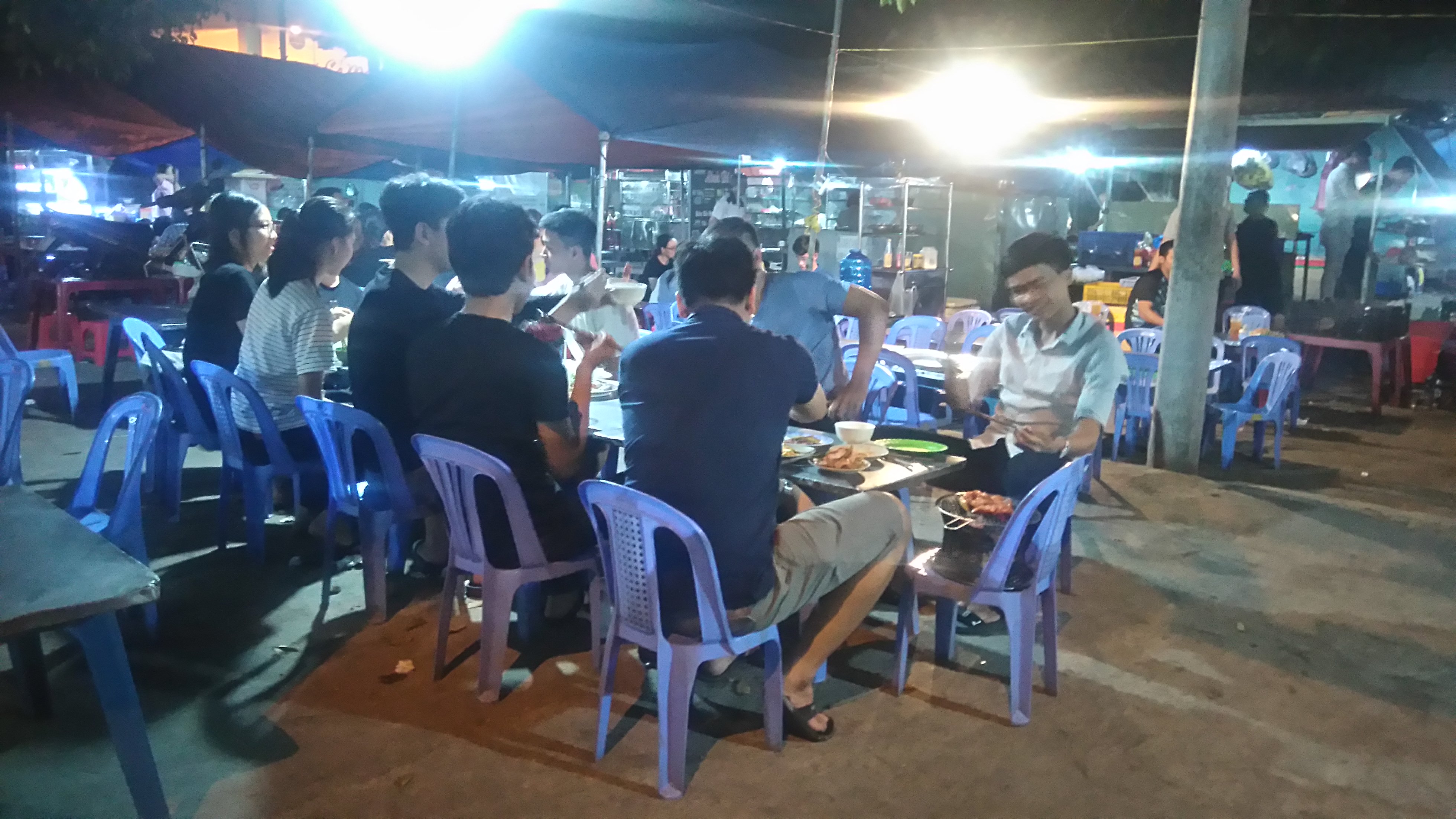 “Lâu lâu kéo nhau về Nông Lâm ăn ngập mặt luôn, có điều xa quá. Do thời gian không nhiều nên chỉ ăn được vài món. Bốn đứa, hai phần ram bắp, hai dừa tắc, bốn ly chè, ba trái xoài keo” _ anh Thái (cựu sinh viên Nông Lâm) hào hứng chia sẻ.