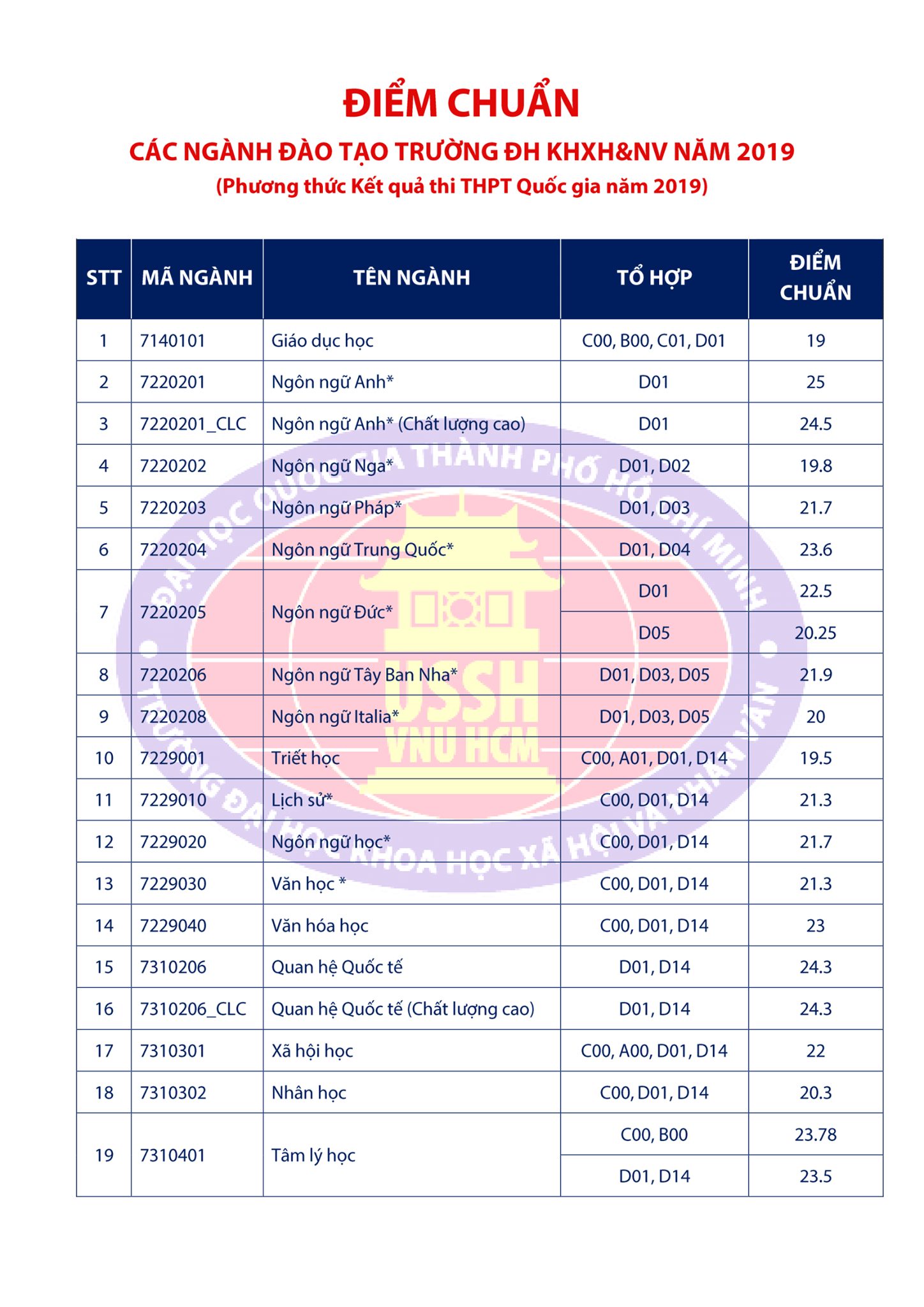 Cụ thể, điểm chuẩn các ngành đào tạo Trường DDHKHXH&NV TPHCM 2019: