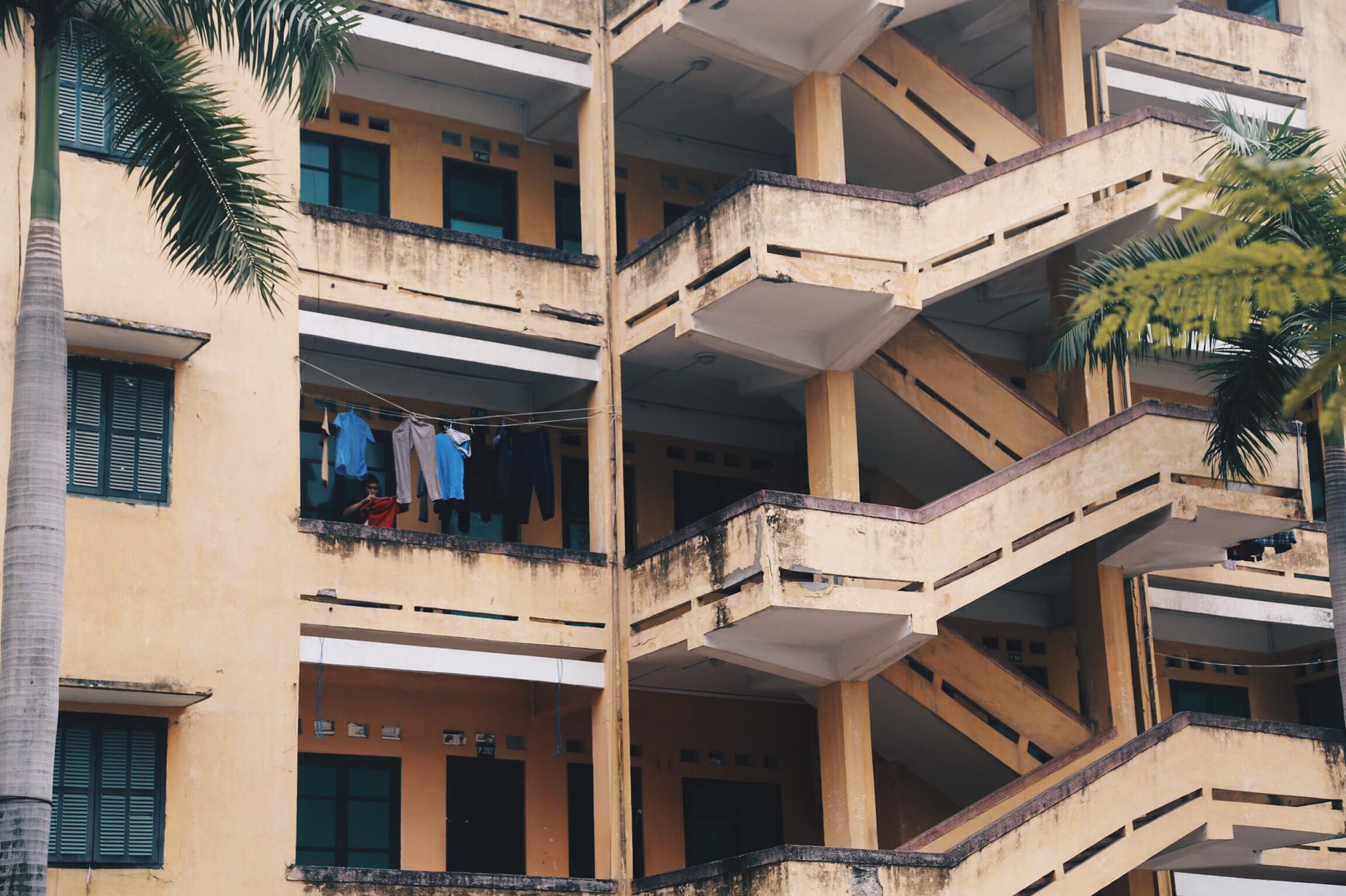 Một góc của Ký túc xá của trường đại học Luật Hà Nội. Được biết, KTX ngôi trường này có diện tích cực kì rộng (2.106 m2) gồm 4 khu nhà lớn, một sân tập thể rộng rãi để các bạn vừa có thể gửi xe mà còn có thể chơi thể thao.