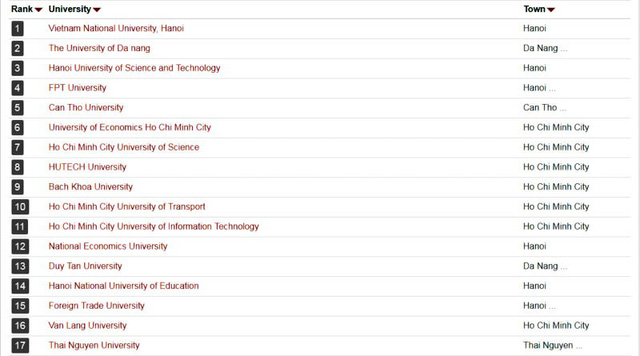 Và mới đây, theo hệ thống xếp hạng này, trong số 67 trường Đại học của Việt Nam, Đại học Quốc gia Hà Nội đã giành vị trí dẫn đầu với nhiều tiêu chí được đo lường kỹ càng như chất lượng đào tạo, độ phổ biến với sinh viên, thành tích trong giáo dục,… Các vị trí tiếp theo lần lượt gồm: ĐH Đà Nẵng thứ nhì, Trường ĐH Bách khoa Hà Nội thứ ba,…