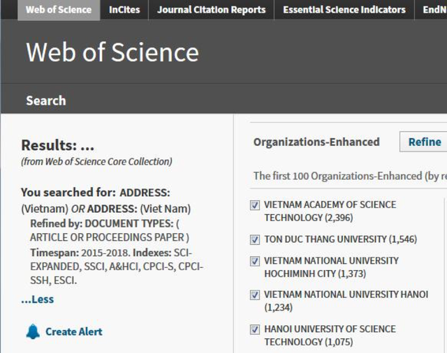 Danh sách 10 đơn vị hàng đầu về công bố ISI ở Việt Nam trong giai đoạn 1/1/2015 đến 31/5/2018 (gần 3 năm):
