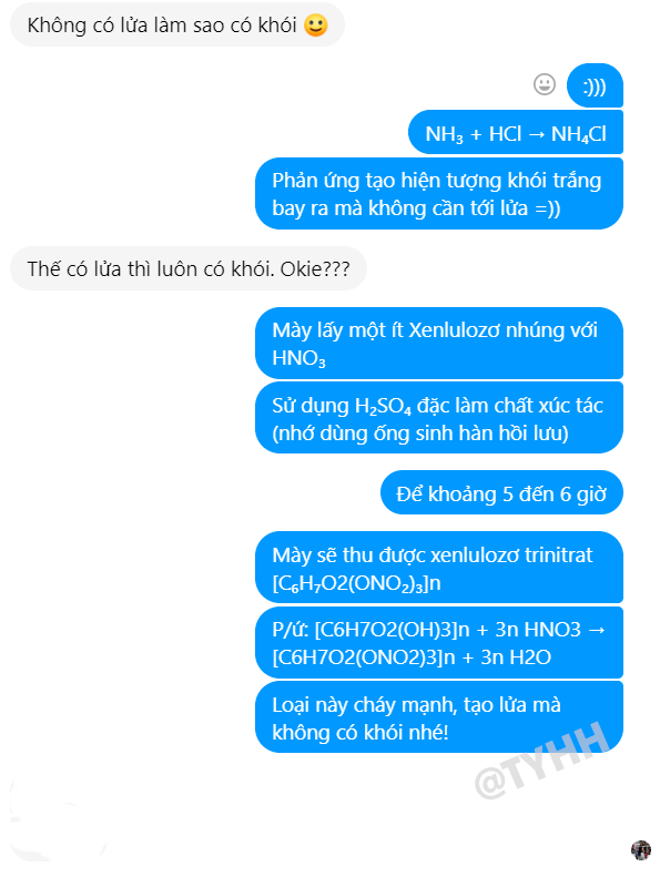 Cụ thể, trên trang dành cho những người yêu môn hóa học đã đăng tải một đoạn chat giữa một dân chuyên hóa và người bạn của mình với nội dung chứng minh câu tục ngữ “Không có lửa làm sao có khói” không hoàn toàn chính xác.