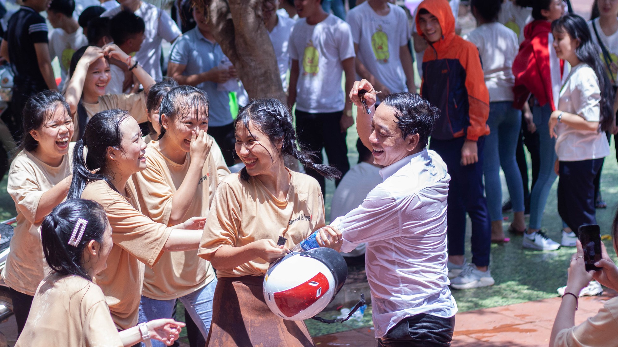 Mục đích của việc đăng tải những hình ảnh lên mạng xã hội chỉ để cho người thầy của mình tự hào về lớp. Trong ảnh là thầy Hậu, giáo viên chủ nhiệm của lớp đang chơi bóng nước cùng các bạn học sinh.