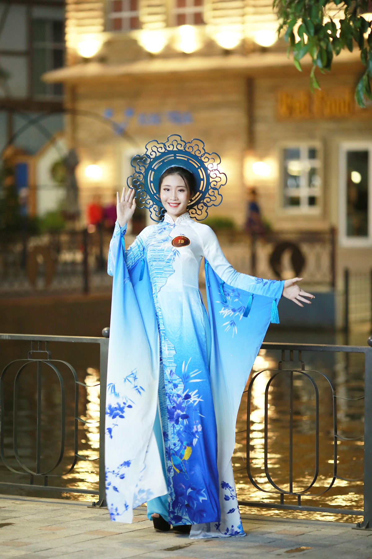 Hầu hết các thí sinh đều sở hữu gương mặt xinh xắn tự nhiên cùng mái tóc dài nên khi khoác lên mình bộ áo dài có tông màu chủ đạo trắng xanh, ai nấy đều trở nên dịu dàng và mang đậm nét phụ nữ Việt.