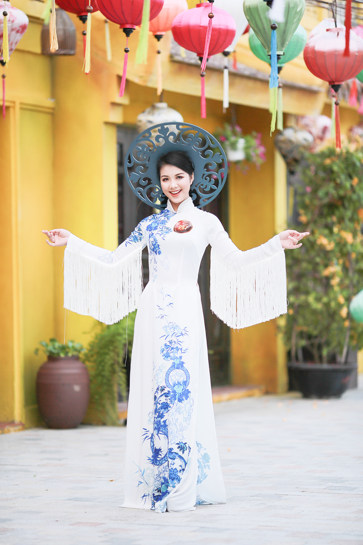 Đây là thời điểm các cô nàng bước vào phần thi Áo dài - một phần không thể thiếu ở các đấu trường về sắc đẹp và cũng là dịp để họ thể hiện nét duyên dáng của bản thân, cũng như khoe vóc dáng.