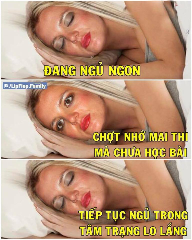 “Ôi mình thường xuyên như thế nhé. Dù mai thi nhưng vẫn ngủ đã. Mình luôn có quan điểm: buồn ngủ học ko vào đâu”, bạn Đ. Đ chia sẻ.