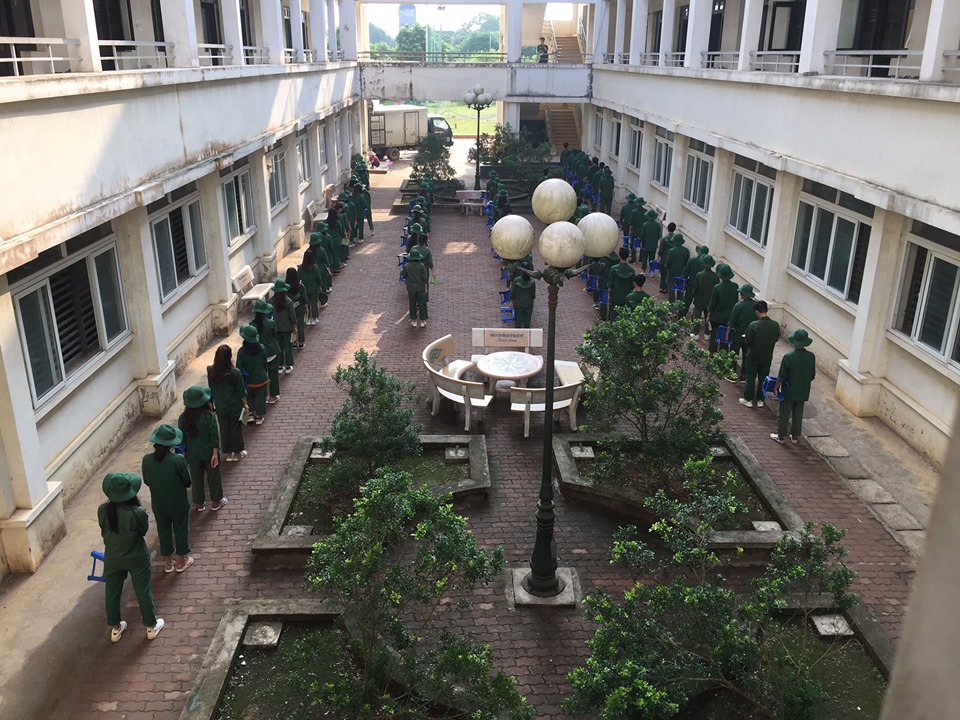 Bức ảnh cả đại đội bị phạt đứng nghiêm trang ở sân được đăng tải với dòng trạng thái: “ Thầy Hoàng said: Ngồi yên không thích thì xuống sân” khiến ai cũng đồng cảm. Bức ảnh nhanh chóng nhận được nhiều phản hồi từ phía CĐM và các bạn sinh viên. Nhiều người bồi hồi nhớ lại kì học quân sự của mình.