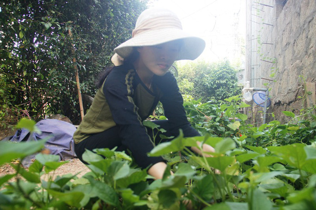 Ngoài thời gian học, em Linh luôn chăm chỉ làm lụng việc nhà giúp mẹ.