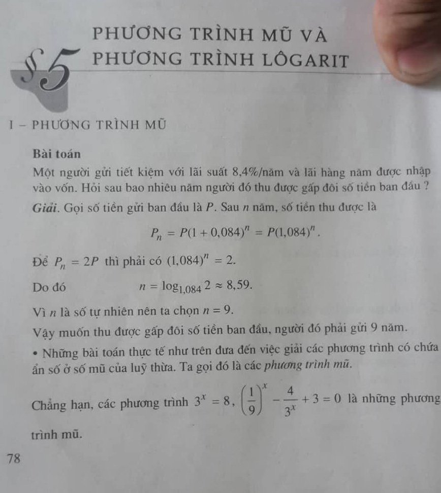 Bài toán ở trang 78 SGK Giải tích 12 mà Bộ GD-ĐT lấy làm cơ sở cho câu hỏi số 16 mã đề 109. Ảnh: Nguyễn Thảo