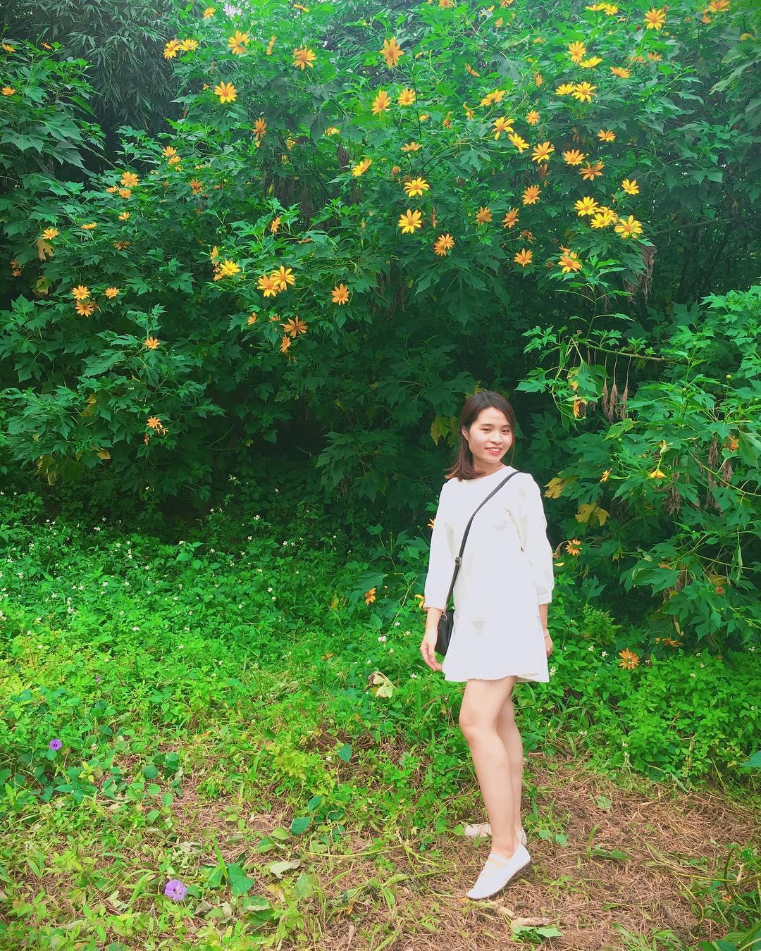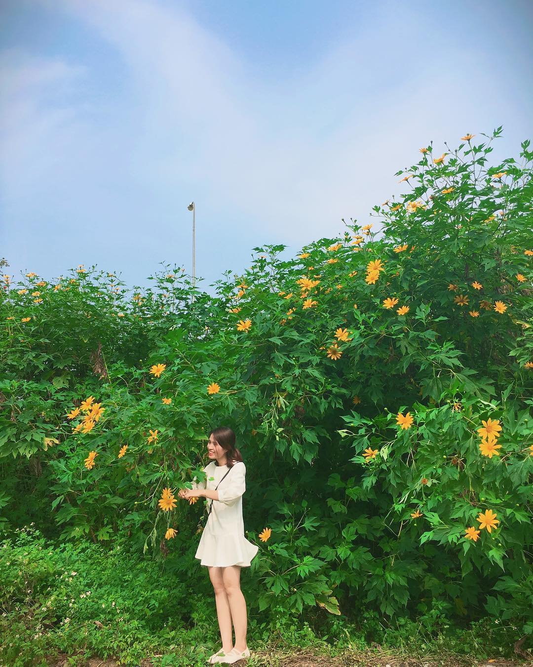 Chẳng cần đi Đà Lạt hay lên Ba Vì xa xôi, các sinh viên của ĐH Lâm Nghiệp “nghiễm nhiên” được sống ảo với rặng hoa dã quỳ nở rộ mỗi dịp đông về.