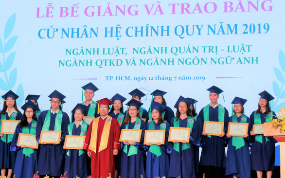 Tại lễ bế giảng, lãnh đạo nhà trường đã trao tận tay những tấm bằng tốt nghiệp cho 1.223 tân cử nhân đã hoàn tất chương trình đào tạo của trường, bao gồm các chuyên ngành Luật, Quản trị - Luật, Quản trị kinh doanh và Ngôn ngữ Anh.