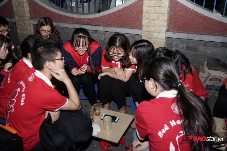 Mỗi lần các cầu thủ dâng lên tấn công, các cổ động viên sinh viên cũng hồi hộp theo từng pha bóng.