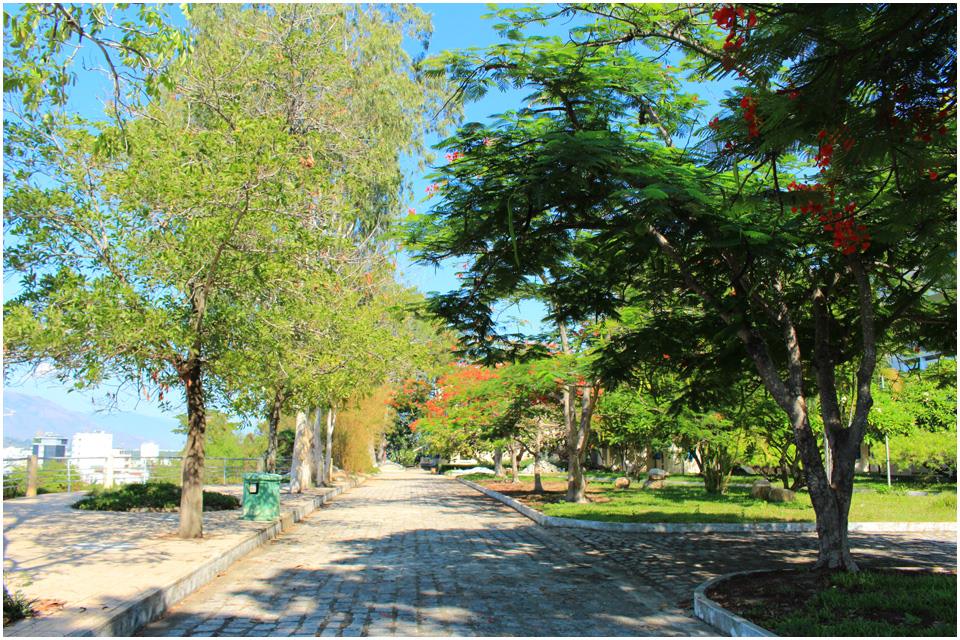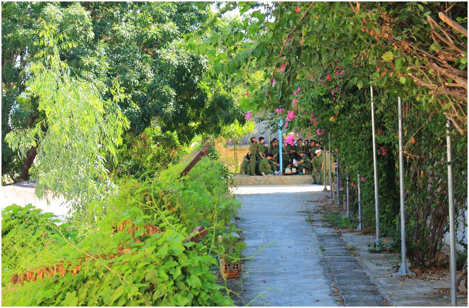 Nếu sinh viên các trường Đại học khác phải “dãi nắng” mỗi kỳ học quân sự thì sinh viên Đại học Nha Trang lại được ưu ái hơn khi khuôn viên trường đâu đâu cũng có cây xanh tỏa bóng mát.