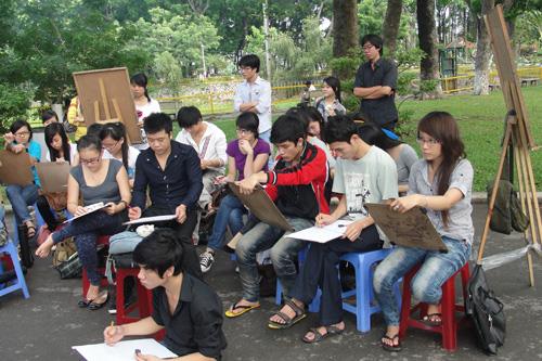 Một buổi vẽ ngoại khóa của trung tâm luyện thi Kiến Trúc - Mỹ Thuật (Ảnh: TTLT KT-MT Bình Giã)