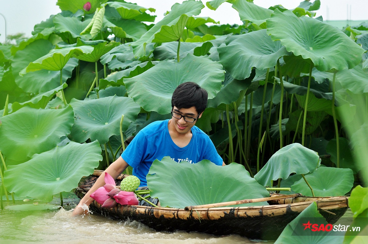 Còn gì thích thú hơn khi tự tay chèo thuyền, hái những búp sen xinh xắn như thế này.