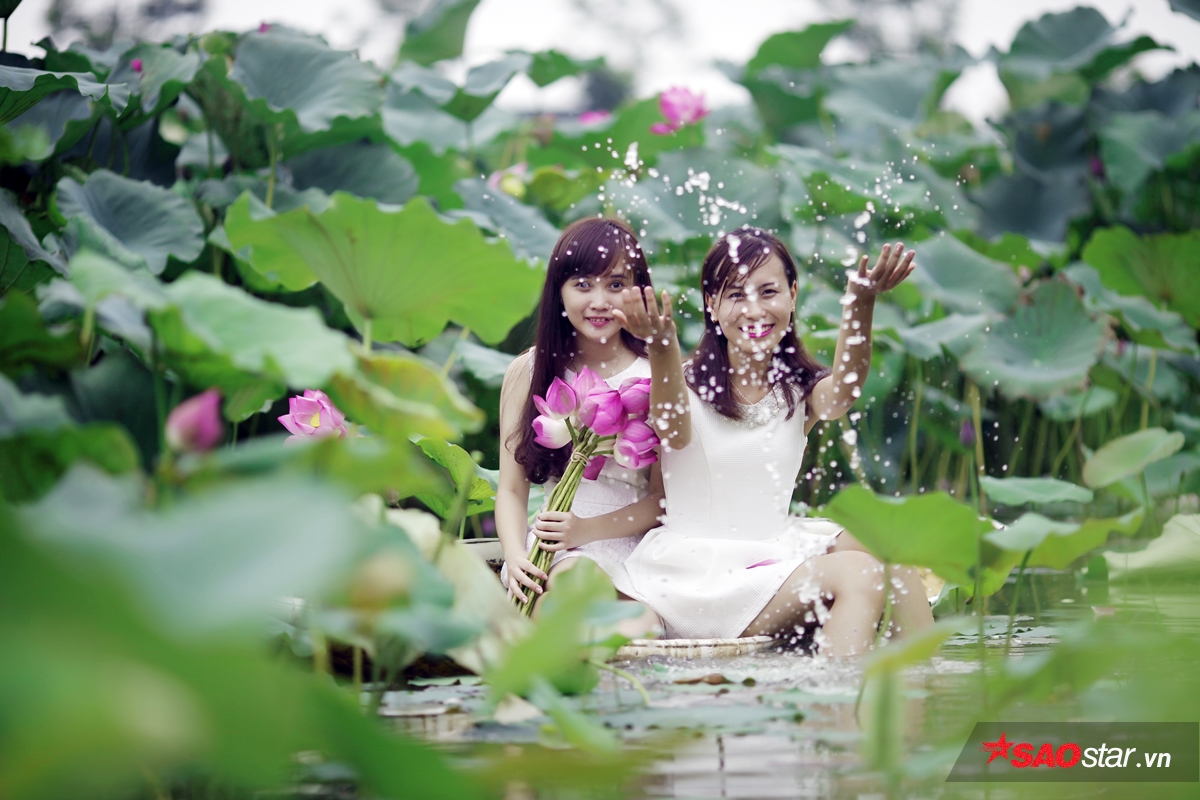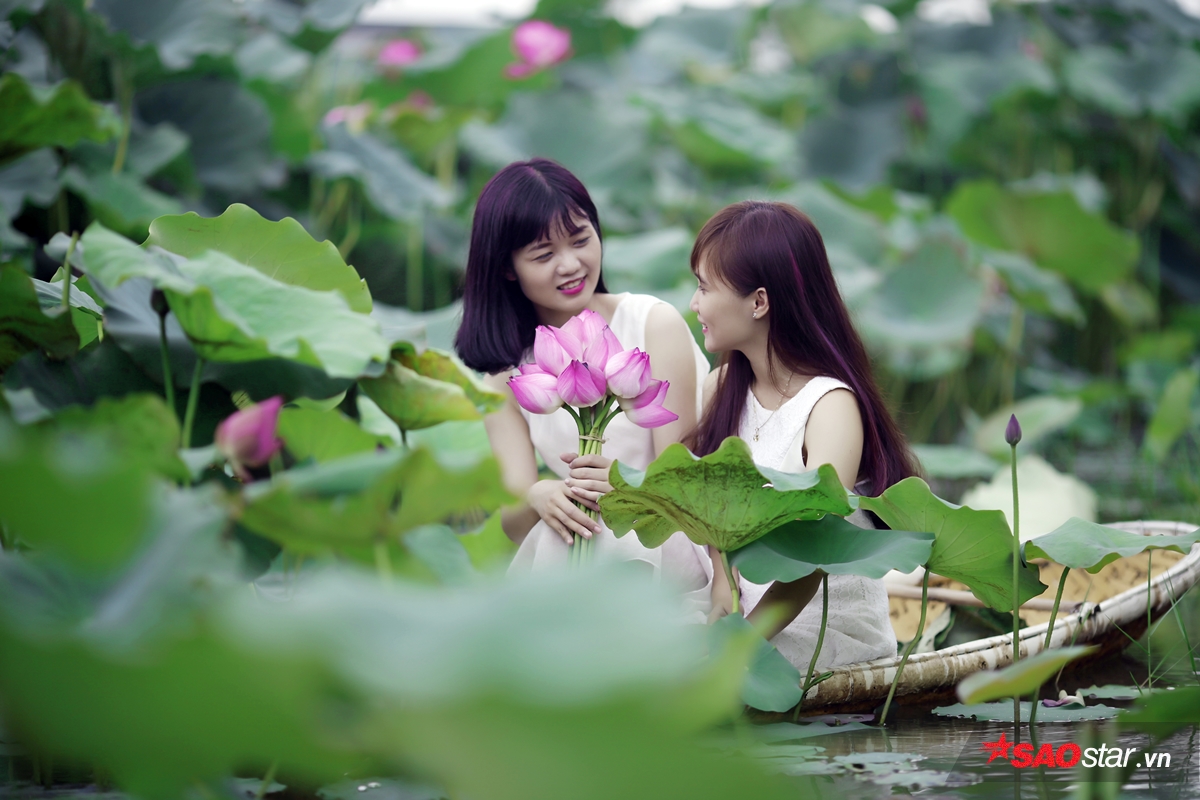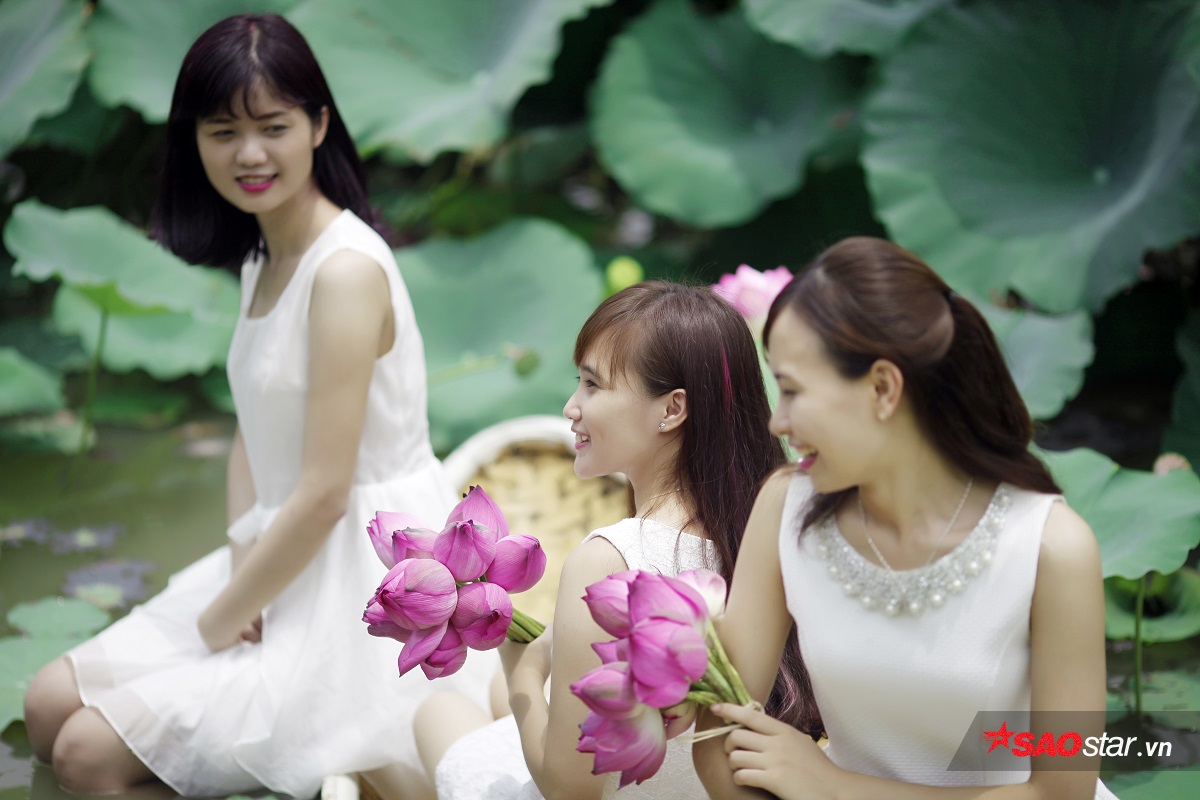 Từng nhóm bạn khoe sắc cùng sen.